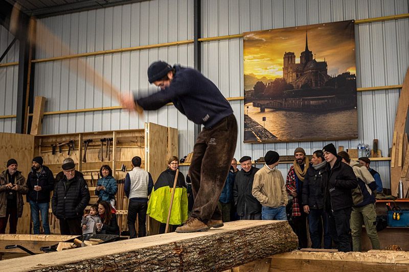 Une forêt de 1 000 chênes s'élève à nouveau dans le ciel de Paris, le chantier de la charpente de Notre-Dame est terminé. C'est le résultat d’une formidable aventure humaine, sous la direction technique des Ateliers Perraut, située dans le Maine-et-Loire. En 2022, les Ateliers Perrault remportaient les appels d'offres* lancés par l'établissement public chargé de la restauration de la cathédrale Notre-Dame de Paris, maître d'ouvrage du chantier, pour la restitution des charpentes médiévales (XIIe et XIIIe siècle) du chœur et de la nef. Un marché d'envergure et de prestige pour l'entreprise qui s’est vu confier deux des trois lots de cette immense charpente en chêne, réalisées à Saint-Laurent-de-La-Plaine (49), siège de l'entreprise.